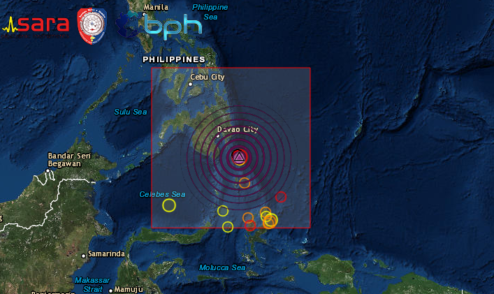 Epicentro in mare a sud-est della città di Davao City, ipocentro a circa 90 km di profondità, non dovrebbero esserci danni