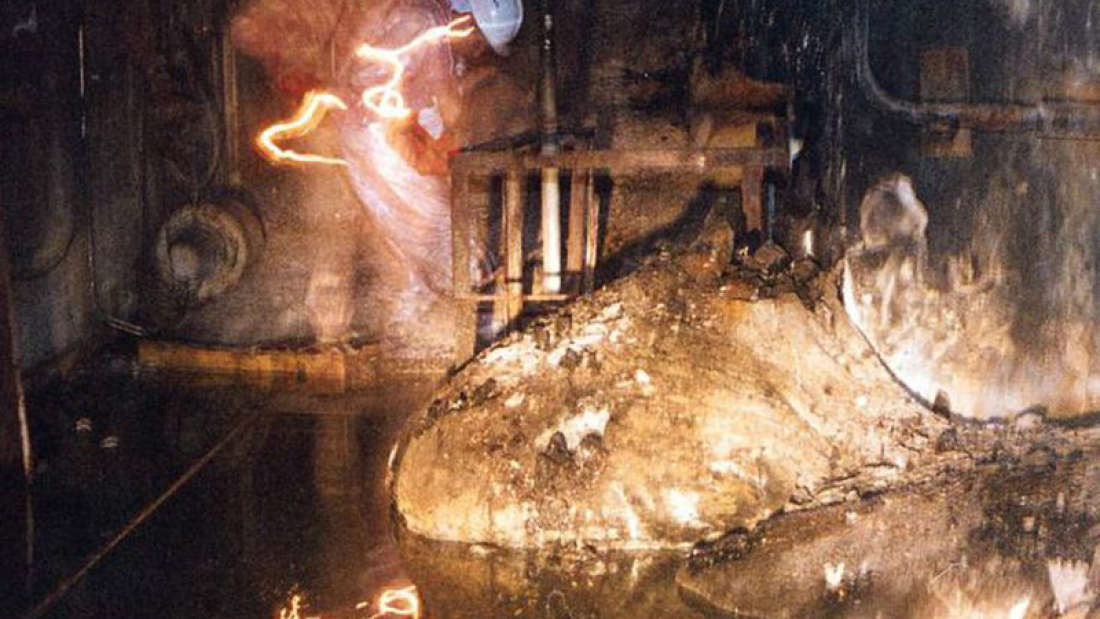 Come suggerisce il termine “fusione”, questa serie di concause, generò abbastanza energia termica per fondere letteralmente il nucleo del reattore e le sue barre di combustibile nucleare. Questo inferno ha prodotto un materiale fuso che trasudava e scorreva come lava emettendo livelli mortali di radiazioni ionizzanti. Mentre la catastrofe continuava ad andare di male in peggio, questa lava mortale sciolse un buco attraverso le travi di acciaio e il cemento sotto il reattore, cadendo nel seminterrato, dove alla fine si raffreddò e si indurì.
