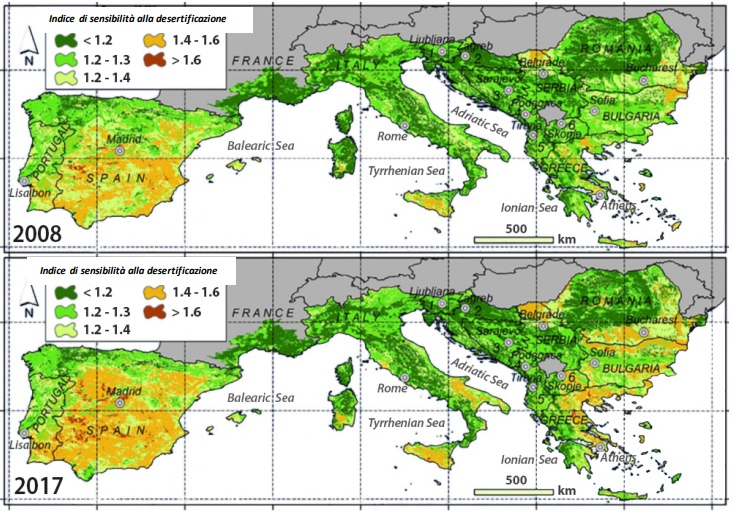 L’ultimo Atlante mondiale della desertificazione elaborato dal Joint research centre (Jrc) dell’Ue mostra che sono già 13 gli Stati membri colpiti dal fenomeno, con costi economici legati al degrado del suolo stimati nell’ordine delle decine di miliardi di euro all’anno: Italia, Bulgaria, Cipro, Croazia, Grecia, Lettonia, Malta, Portogallo, Romania, Slovacchia, Slovenia, Spagna e Ungheria. Si tratta di un problema particolarmente grave nell’area mediterranea, e dunque anche per il nostro Paese.