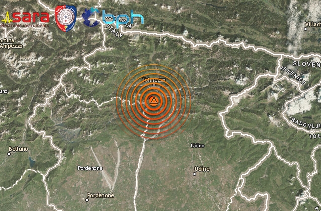 Un terremoto di magnitudo (Ml) 4.0 (Mw 3.7) è avvenuto alle ore 15:57:23 ed è stato localizzato nella zona di Tolmezzo (UD) in Friuli, con ipocentro alla profondità di 4,7 km.
