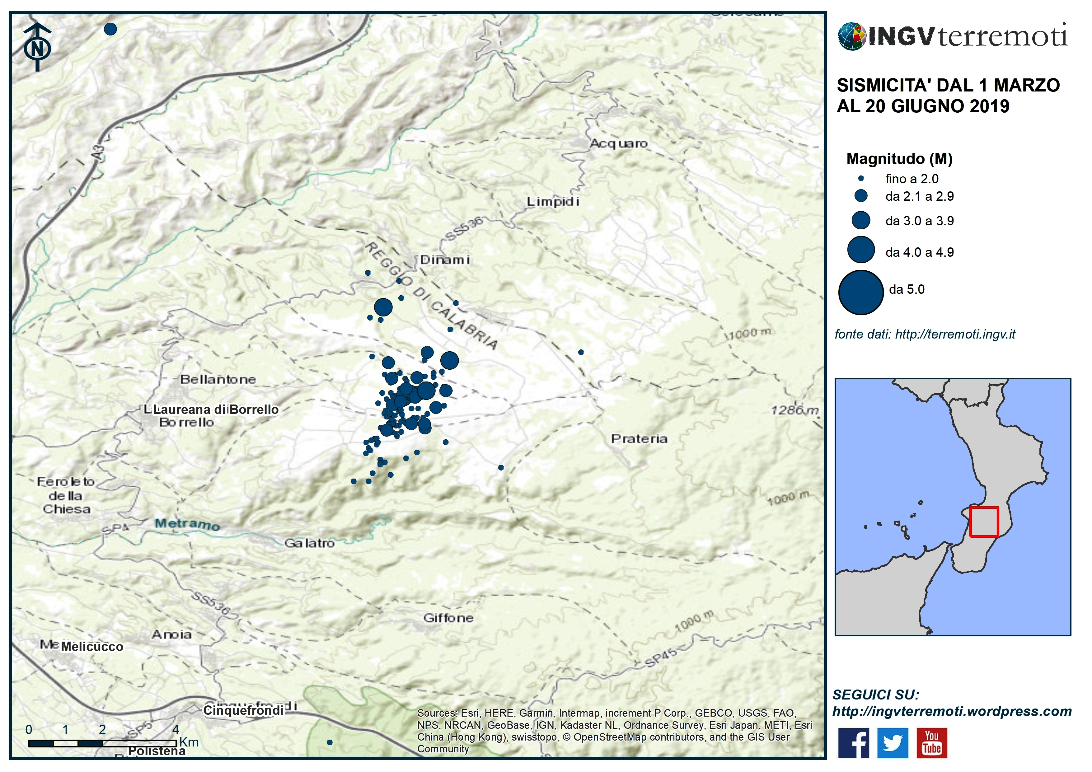 Sequenza sismica sull’Aspromonte in provincia di Reggio Calabria: aggiornamento del 20 giugno 2019