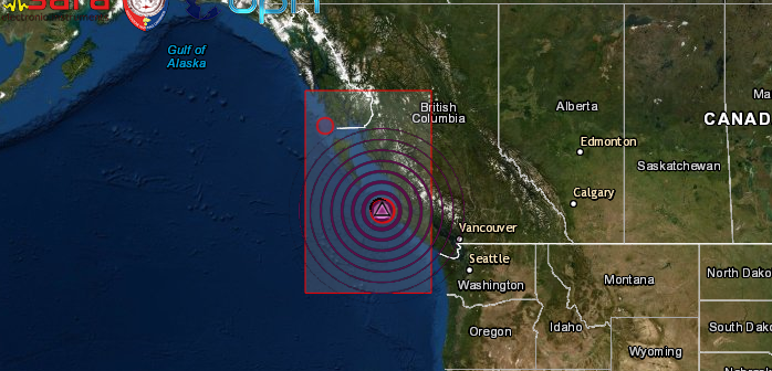 FORTE SCOSSA DI TERREMOTO DI Mw 6.2 NELLA ZONA DELLA CASCADIA, DI FRONTE ALLE COSTE DELLO STATO DEL BRITISH COLUMBIA (USA)