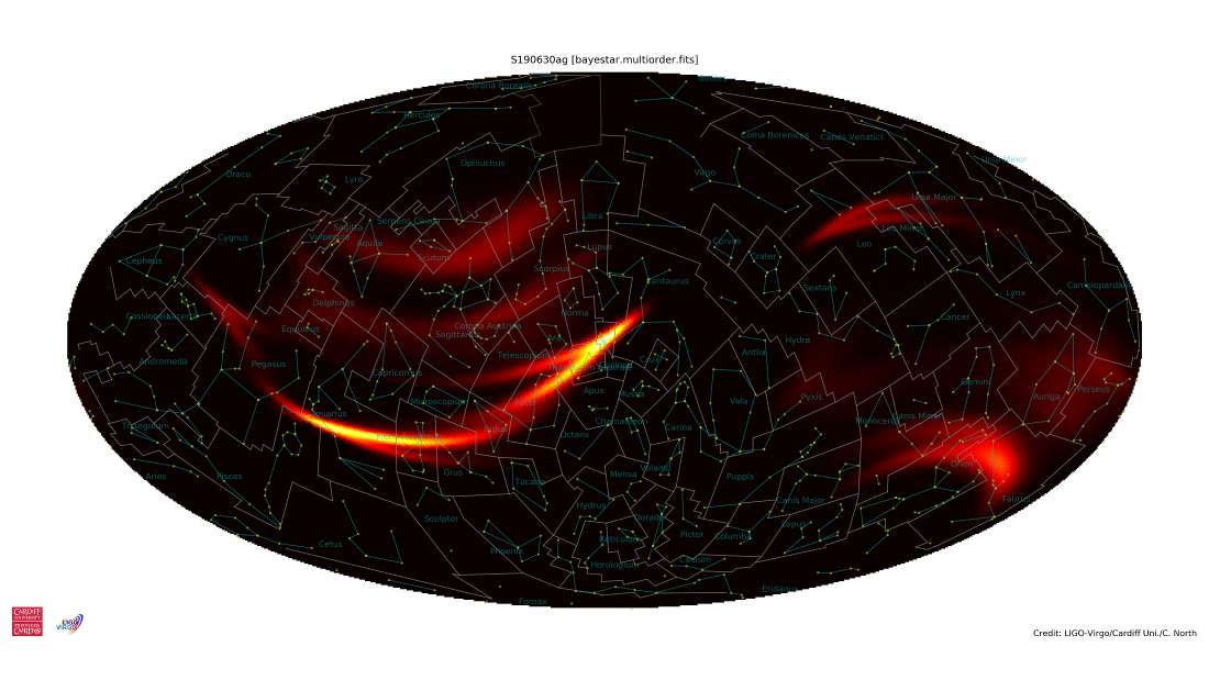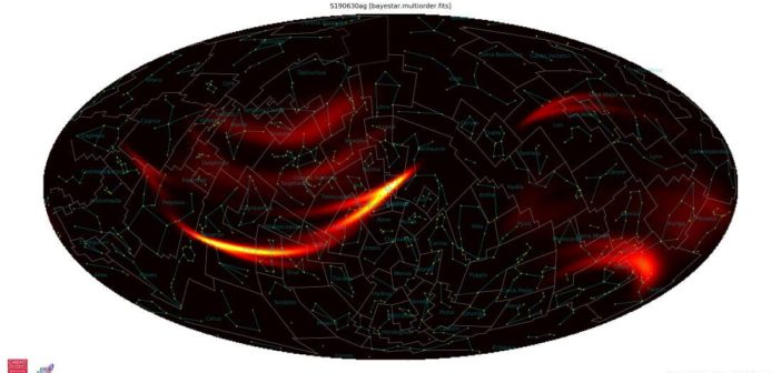 L’evento del 30 giugno, noto anche come S190630ag , è stato stimato essere una collisione tra due buchi neri a circa 3 miliardi di anni luce di distanza. Questa è certamente una distanza impressionante, ma le osservazioni precedenti dell’anno erano state stimate tre volte più lontano. Tuttavia, le probabilità che S190630ag sia un evento genuino sono buone, con una frequenza stimata di falsi allarmi meno di una volta ogni 200.000 anni.