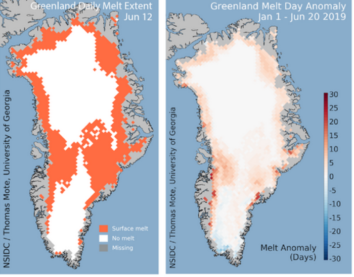 Anche se lo scioglimento stagionale della calotta glaciale non rappresenta nulla di insolito, questi livelli sono incredibilmente alti e vicini ai livelli record visti nel 2012 quando la calotta glaciale aveva perso circa 250 miliardi di tonnellate di ghiaccio.