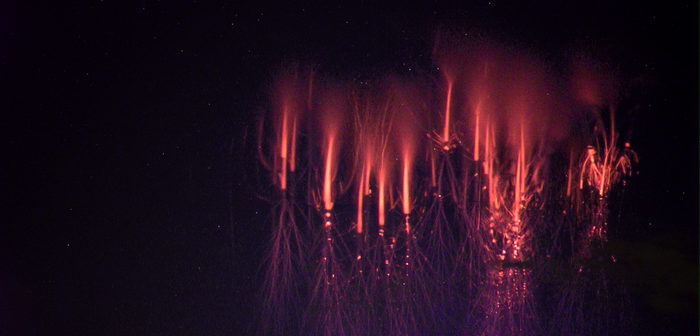 “Folletti rossi lampeggiano sopra un temporale nell’Italia del Nord”, scrive Spinner. Quando la tempesta si è accanita sulla Lombardia, la sua videocamera ha registrato tre magnifici gruppi di spiritelli (che possono ricordare anche una foresta di alberi o delle meduse) alti più di 40 chilometri, con tentacoli purpurei che pendono in basso e tante teste rosse sopra che toccano i margini dello spazio. “Questi scatti sono speciali – continua Spinner, che monitora queste formazioni in Europa da oltre 7 anni -. Anche se tre folletti-medusa in una notte non sono insoliti per un temporale forte, i loro colori ripresi in alta qualità non si riescono ad ottenere per molto tempo”.