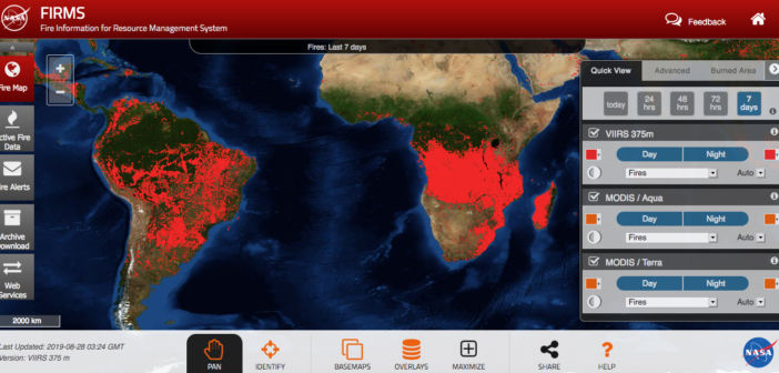 L’immagine che vedete rappresenta il numero di incendi nel mondo negli ultimi 7 giorni (direttamente dai satelliti della NASA, progetto FIRMS). Le foreste di Angola e Congo stanno bruciando, ancor di più di quanto succede in Amazzonia
