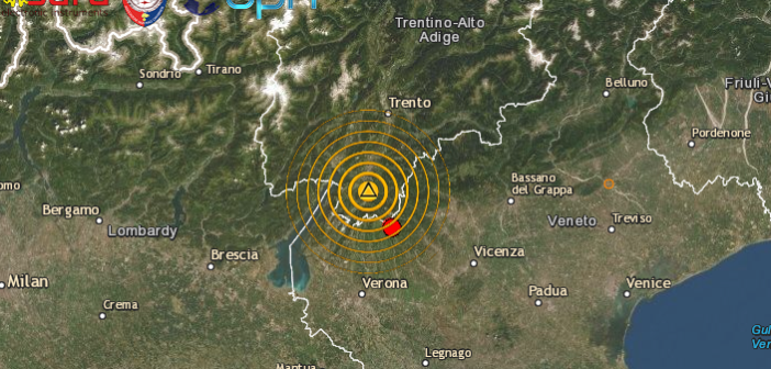 Una scossa di terremoto di magnitudo 3.4 è avvenuta alle ore 07:36:35 italiane nella zona a est dl Garda, in Trentino Alto Adige con ipocentro alla profondità di 11,7 km.