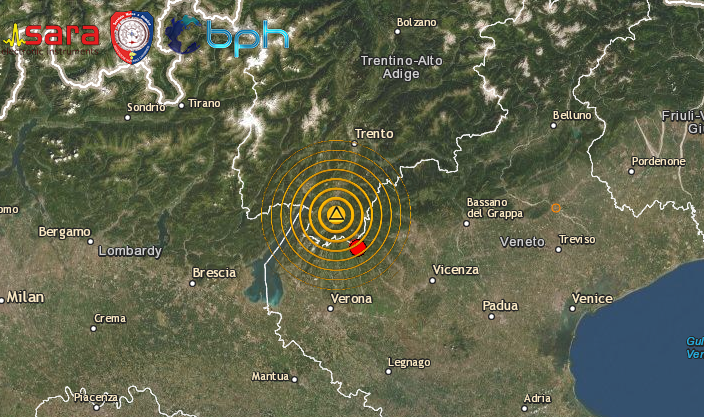 SCOSSA DI TERREMOTO DI Ml 3.4 NELLA ZONA A EST DEL GARDA IN TRENTINO ALTO ADIGE