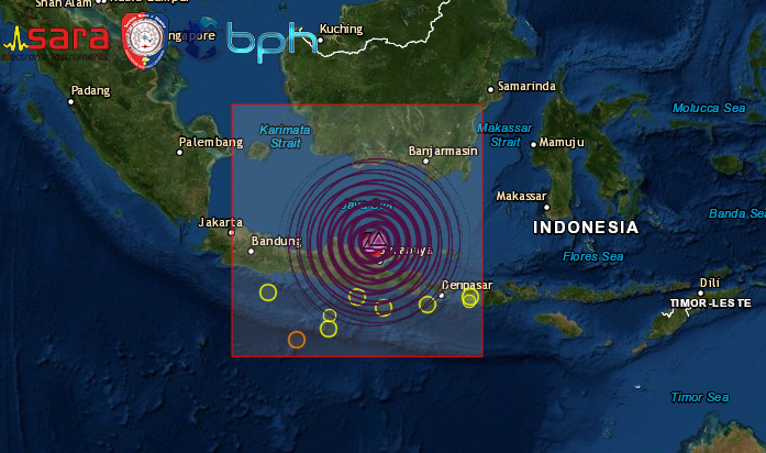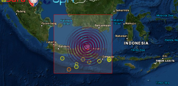 DOPPIA FORTE SCOSSA DI TERREMOTO DI Mw 6.2 E Mw 6.0 NEL MARE DI JAVA IN INDONESIA