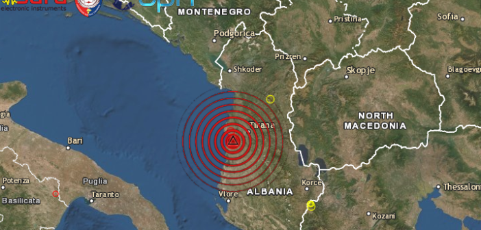 Una forte scossa di terremoto di Mwp 5.8 ha colpito l’Albania. Il sisma e’ stato registrato alle ore 14:04:27 ora italiana, con ipocentro a 20 km circa di profondità. La scossa è stata seguita da una replica di Mb 5.3 circa dieci minuti dopo la scossa principale, alle ore 16:15:54, con ipocentro a circa 20 km di profondità