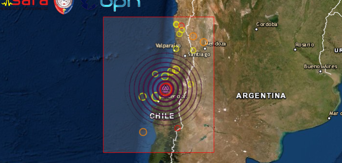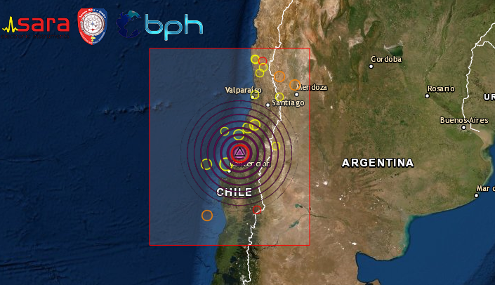 Secondo il Servizio Geologico degli Stati Uniti USGS il terremoto e’ avvenuto 64km a a WSW della localita di Constitucion, potrebbero esserci danni, evento avvertito in molte zone della costa. Non è stata diramata allerta tsunami