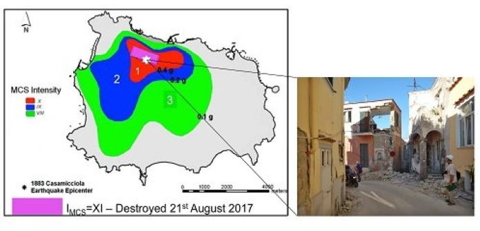 0Il terremoto di Ischia del 2017, che ha prodotto ingenti danni tra Casamicciola e Lacco Ameno, deve essere visto come un campanello d’allarme. La storia passata dell’Isola, infatti, mostra che spesso i terremoti più forti avvengono a ‘sciami’, nella stessa zona, distanziati temporalmente l’uno dall’altro di alcuni anni, e con una durata totale di alcuni decenni. Appare quindi prioritaria la messa in sicurezza degli edifici in un’area, ampia circa 20 km2, in cui i terremoti del passato sono stati fortemente distruttivi