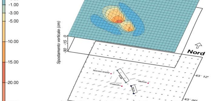 Questo ha come effetto più evidente un abbassamento dei punti che si trovano, sulla superficie, direttamente sopra al piano di faglia, fino a -61.33 cm nel caso dell’Irpinia e -30.01 cm nel caso del più recente evento Umbro-Marchigiano.