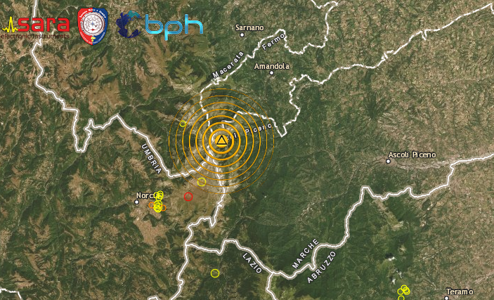 Epicentro nella zona di Montemonaco (Ap), ipocentro profondo a 66 km, evento probabilmente non avvertito dalla popolazione