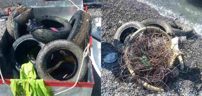 Isola di Dino, in Calabria: recuperati oltre 100 copertoni dal fondale marino