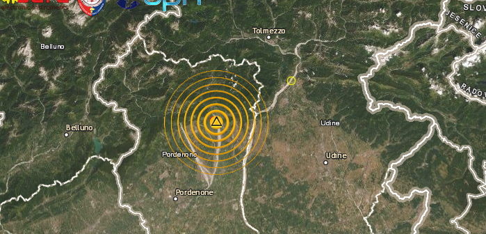 SCOSSA DI TERREMOTO DI Ml 3.1 IN PROVINCIA DI PORDENONE IN FRIULI