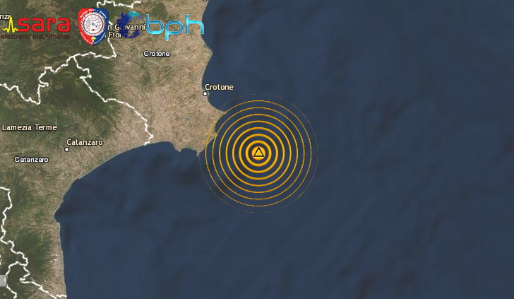 SCOSSA DI TERREMOTO DI Ml 3.9 (Mw 4.1) AL LARGO DELLA COSTA DI ISOLA CAPO RIZZUTO, NEL CROTONESE IN CALABRIA