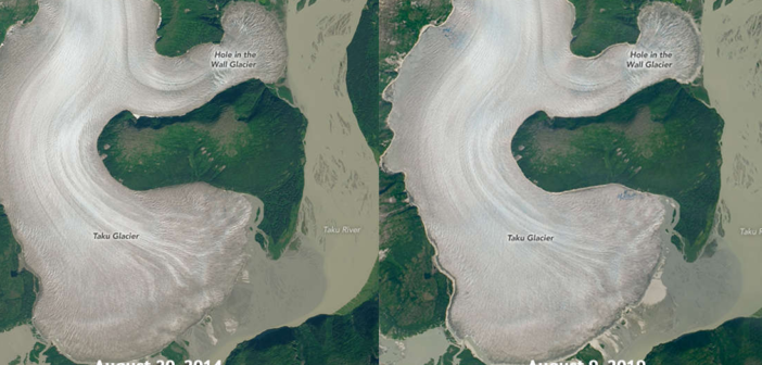 Il ricercatore Mauri Pelto ha studiato il Taku e altri 249 ghiacciai in tutto il mondo, utilizzando i datidi molti decenni. A differenza degli altri ghiacciai, il Taku era stabile e lo era fino alla fine degli anni ’80. Tuttavia, osservazioni precise mostrano che questa era solo la calma prima della tempesta. I dati forniti dall’Operational Land Imager montato sul satellite Landsat 8 della NASA mostrano chiaramente che questo gigantesco ghiacciaio ha iniziato a sciogliersi. I risultati sono stati pubblicati sulla rivista Remote Sensing .