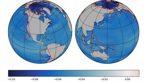 Lo studio ha anche permesso di identificare le regioni più colpite rispetto dall’acidificazione degli oceani e la situazione sembra particolarmente allarmante nel Triangolo dei Coralli, nel Mare di Bering e nel Golfo dell’Alaska, al largo del Perù, nell’Oceano Artico e nella corrente della California.