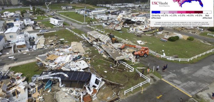 All’università della Southern California (USC) ricordano che «Quando l’uragano Harvey si è schiantato contro la costa del Texas nel 2017, gli sfollati si sono riversati nell’entroterra, cercando di ricostruire le loro vite in seguito al disastro. Entro decenni, la stessa cosa potrebbe accadere su una scala molto più ampia a causa dell’innalzamento del livello del mare».