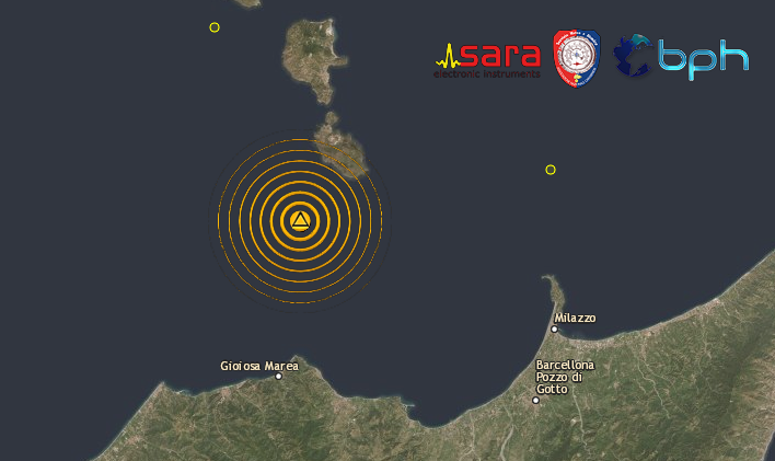 Epicentro in mare a sud ovest dell’Isola di Vulcano, con ipocentro superficiale, a circa 12 km di profondità