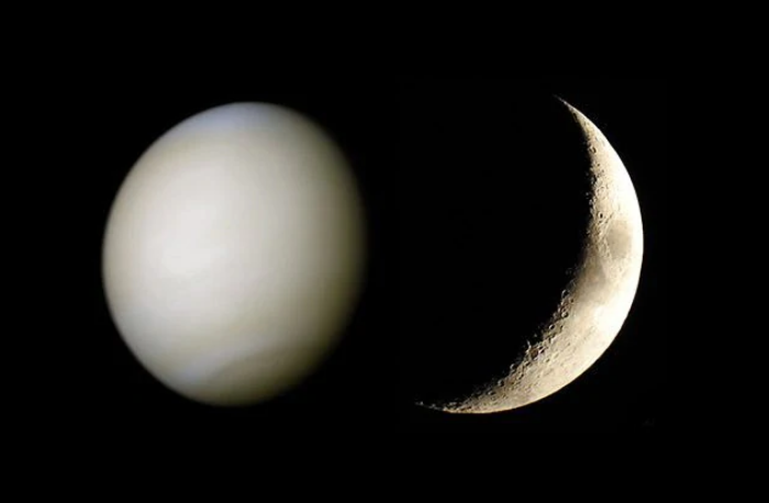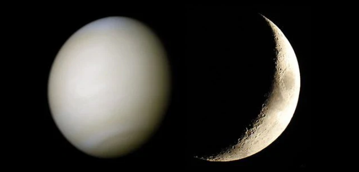 Come sempre, le congiunzioni astrali possono essere ammirate ad occhio nudo, ma con uno strumento si apprezzano i diversi dettagli dei protagonisti. Venere, a causa della sua peculiare atmosfera, è un oggetto piuttosto anomalo da “inquadrare” con un telescopio; facendo attenzione è tuttavia possibile scorgere le sue fasi, simili a quelle della Luna. Grazie alla loro osservazione, il celebre astronomo Galileo Galilei suffragò la teoria eliocentrica proposto da Niccolò Copernico. La falce di Luna, essendo molto sottile, non garantirà una buona osservazione di crateri, mari e catene montuose, ma uno sguardo con un buon binocolo saprà comunque regalare qualche emozione. Varrà sicuramente la pena tentare di fotografare i due oggetti mentre si stagliano bassi sull’orizzonte. La congiunzione astrale terminerà attorno alle 20:45, quando la Luna e Venere spariranno dietro la linea dell’orizzonte, praticamente a braccetto.