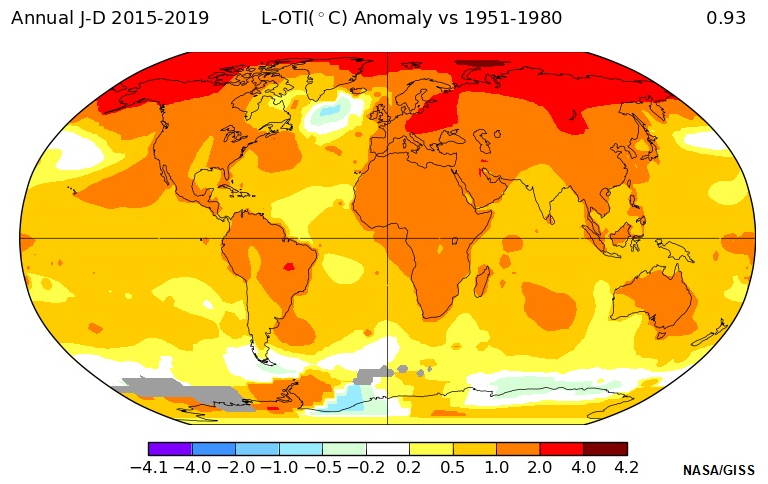 Doug Smith un esperto di previsioni decadali del Met Office fa notare che «Le ultime previsioni quinquennali suggeriscono che il riscaldamento continui, in linea con livelli elevati e sostenuti di gas serra. Esistono incertezze all’interno della previsione, ma la maggior parte delle regioni dovrebbe essere più calda e gli schemi di previsione suggeriscono un maggiore riscaldamento sulla terreno, in particolare nelle parti settentrionali dell’Europa, dell’Asia e del Nord America – estendendo la tendenza in corso».