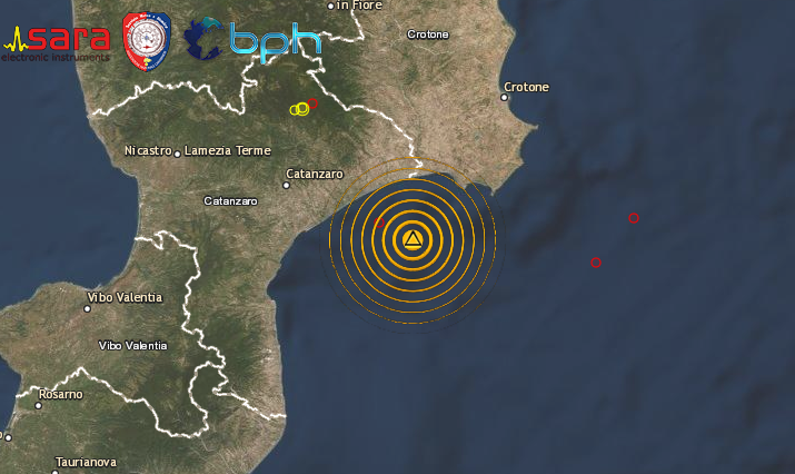 SCOSSA DI TERREMOTO DI Ml 3.4 AL LARGO DELLA COSTA IONICA CATANZARESE IN CALABRIA