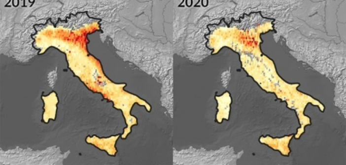 Come già accaduto in Cina, per eterogenesi dei fini le misure messe in atto per contenere la diffusione del coronavirus Sars-Cov-2 stanno avendo effetti positivi – benché temporanei – sulla qualità dell’aria anche in Italia: le immagini satellitari raccolte dal programma europeo Copernicus e diffuse su Twitter da Santiago Gassó, oggi all’Università del Maryland, mostrano nell’ultimo mese «una chiara decrescita nei livelli di NO2 (un marcatore dell’inquinamento atmosferico) in nord Italia». Un dato non da poco, dato che l’Italia è prima in Europa per morti premature da biossido di azoto (NO2) con circa 14.600 vittime all’anno, cui si aggiunge il numero più alto di decessi per ozono (3.000) e il secondo per il particolato fine PM2,5 (58.600).