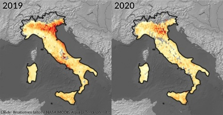 Una consistente riduzione, inoltre, è stata rilevata anche per la concentrazione di particelle fini, come documentano i dati raccolti dall’Istituto meteorologico finlandese. Queste prime rilevazioni necessitano di ulteriori approfondimenti, anche alla luce delle misure di contenimento previste dagli ultimi Dcpm approvati dal Governo, ma già oggi sembrano autorizzare un parallelo con la riduzione dell’inquinamento già registrata prima nella provincia di Hubei (dove si trova la città di Wuhan) e poi in vaste aree della Cina.