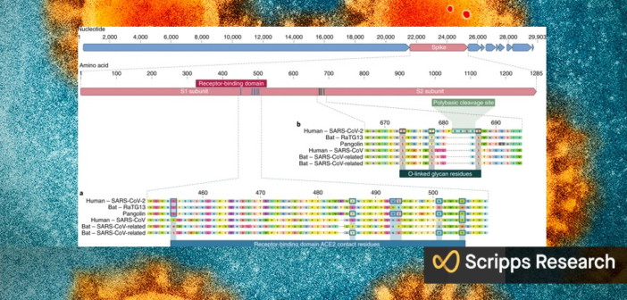 Gli scienziati, grazie a un finanziamento dell’US National Institutes of Health, the Pew Charitable Trusts, the Wellcome Trust, dell’European Research Council e dell’ARC Australian Laureate Fellowship, hanno analizzato il modello genetico per i picchi delle proteine ​​dei picchi, le “armature” esterne che il virus che utilizza per agganciare e penetrare le pareti esterne delle cellule umane e animali. In particolare, si sono concentrati su due importanti caratteristiche della proteina spike: il receptor-binding domain (RBD), una specie di uncino che si aggrappa alle cellule ospiti e il sito di scissione, una specie di apriscatole molecolare che consente al virus di aprire le cellule ospiti e penetrarvi dentro.