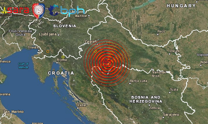 DOPPIA SCOSSA DI TERREMOTO DI Mb 5.2 e Mb 4.8 NELLA ZONA DI PETRINJA IN CROAZIA