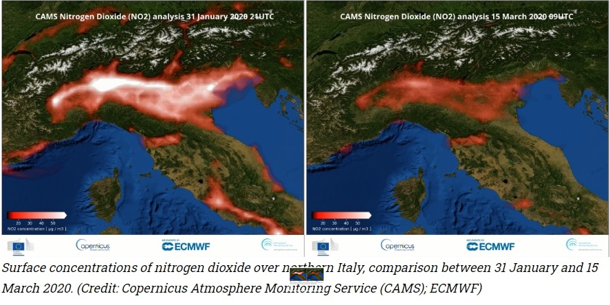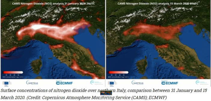 La conferma arriva da Copernicus: cala l’inquinamento in Italia “a seguito delle misure Covid-19”