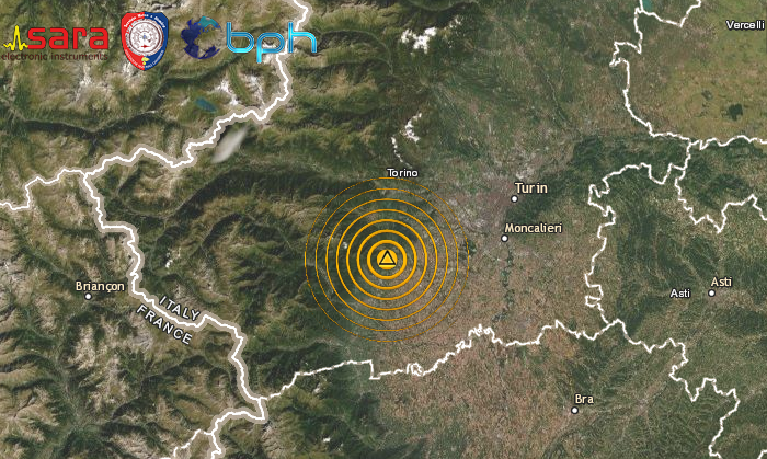 SCOSSA DI TERREMOTO DI ML 3.4 NELLA ZONA DELLA VAL SANGONE (TO) IN PIEMONTE