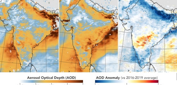 L’immagine più recente mostra i cieli dell’India incredibilmente puliti, cosa alla quale hanno probabilmente contribuito anche eventi meteorologici ma che dimostrano che il blocco influisce fortemente sul drastico calo dell’inquinamento atmosferico.