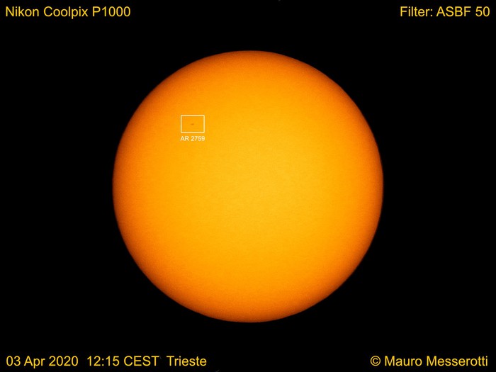 Nel riquadro, il gruppo di macchie solari spie di un progressivo risveglio del Sole. Fonte: Mauro Messerotti (Inaf e Università di Trieste)