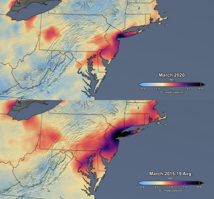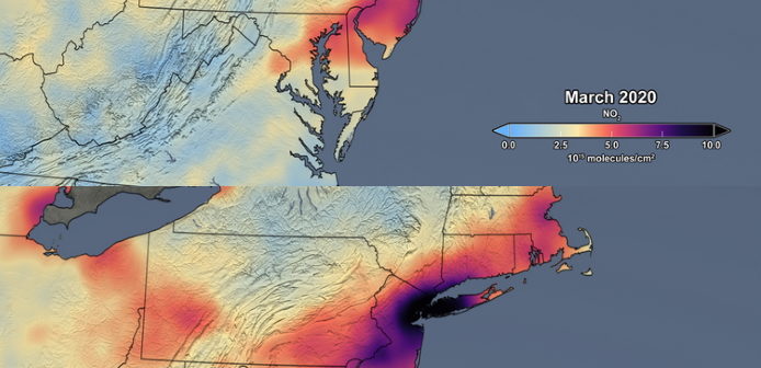 Nel corso delle ultime settimane, le misurazioni satellitari della NASA hanno rivelato significative riduzioni dell’inquinamento atmosferico sulle principali aree metropolitane degli Stati Uniti nord-orientali. Riduzioni simili sono state osservate in altre regioni del mondo anche se questi recenti miglioramenti della qualità dell’aria hanno comportato costi elevati, in quanto le comunità sono alle prese con diffusi blocchi e confinamenti a seguito della diffusione del COVID-19.