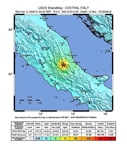 Il terremoto nell’aquilano del 6 aprile 2009 ha avuto una intensità epicentrale compresa tra il IX e il X grado della scala MCS: questo vuol dire che le località più danneggiate, in questo caso Onna e Castelnuovo, hanno subito danni gravissimi e crolli a più della metà degli edifici. Il terremoto è anche conosciuto semplicemente come terremoto dell’Aquila, in quanto dopo un secolo, è stata colpita in Italia una città importante, con decine di migliaia di abitanti e un impianto urbanistico vasto e complesso, e dove purtroppo si sono concentrati due terzi delle vittime.
