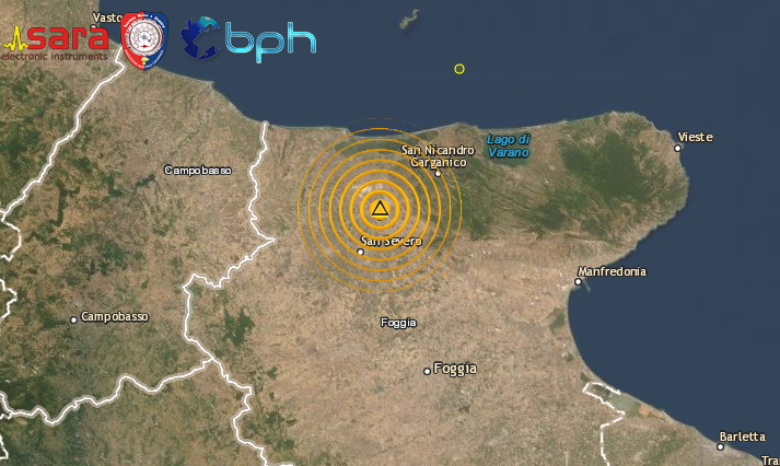 Ipocentro a circa 24 km di profondità, epicentro nella zona di Poggio Imperiale (FG), evento distintamente avvertito dalla popolazione in molte zone della provincia di Foggia