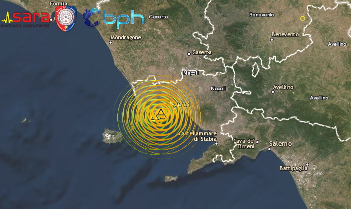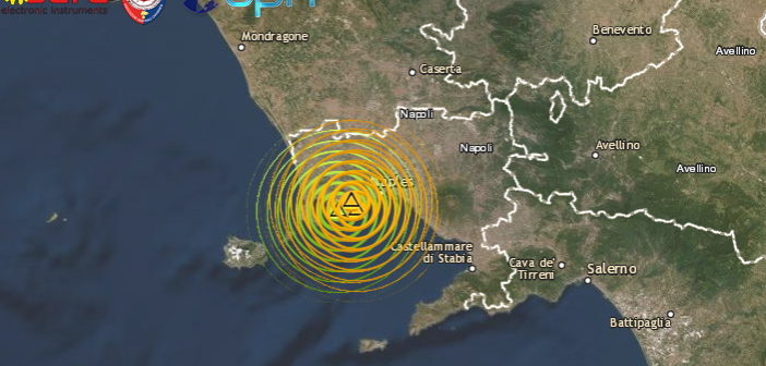 Una serie di scosse di terremoto sta interessando la zona  dei Campi Flegrei, in provincia di Napoli in Campania. L’evento più forte di Md 3.1 è stato registrato alle ore 04:59:02 con ipocentro alla profondità di soli 2.5 km