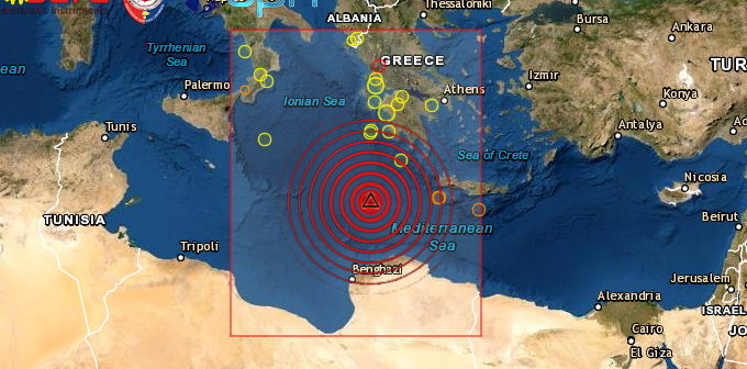 FORTE SCOSSA DI TERREMOTO DI Mb 5.5 NEL MEDITERRANEO CENTRALE, A OVEST DELL’ISOLA DI CRETA