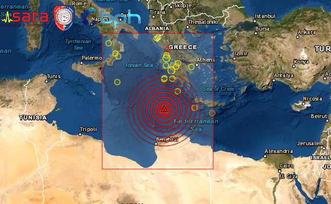 Epicentro in mare, ipocentro a circa 10 km di profondità, evento avvertito dalla popolazione in Grecia, Libia, Malta e sulle coste Pugliesi, Calabresi e Siciliane