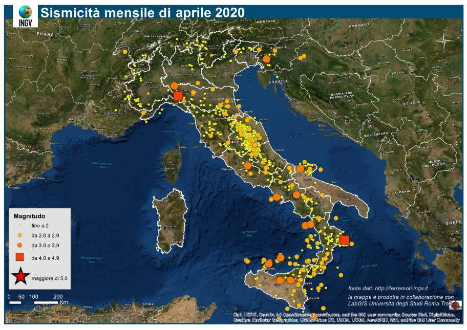 INGV: Ad Aprile 2020 sono stati 187 i terremoti in Italia che hanno raggiunto e superato M 2.0