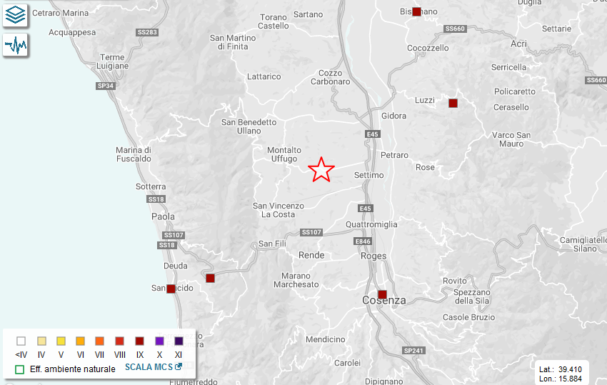 Il 24 maggio 1184 un terremoto di Me 6,7 (Magnitudo Equivalente calcolata sulla base delle osservazioni macrosismiche) colpì in modo distruttivo alcuni centri della valle del fiume Crati, nella Calabria settentionale. Secondo i cenni storici, a Cosenza e Bisignano il terremoto causò dei crolli nelle rispettive cattedrali, subirono distruzioni anche le abbazie della Sambucina e di Matina e crollarono le mura del borgo fortificato di San Lucido.