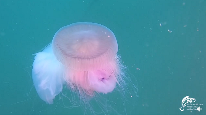 Una creatura tanto bella quanto temibile visto che le sue dimensioni possono arrivare anche a un metro di diametro ed è urticante. Quella osservata da due sub, al largo delle coste triestine, si aggira attorno ai 45-50 cm.