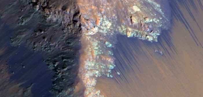 Sono state battezzate Recurring Slope Lineae: strisce scure, stagionali, che appaiono sulla superficie di Marte in corrispondenza di scarpate. Data la somiglianza con la sabbia scura, inumidita dall’acqua, la suggestione è forte e fin dal loro primo avvistamento, nel 2011, hanno fatto supporre che corrispondessero a flussi di acqua liquida.