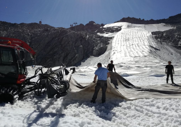 Correre ai ripari è indispensabile, anche per preservare l’enorme indotto economico (turistico ma non solo) che ruota attorno ai delicati ecosistemi montani. Ecco dunque che al termine della stagione sciistica (che sul Presena arriva generalmente fino a maggio, anche se quest’anno è stata interrotta un paio di mesi prima a causa del lockdown da coronavirus), un’immensa rete di teloni geotessili viene stesa sul ghiacciaio per preservarlo dai violenti raggi solari.  «L’idea dei teli – spiega il presidente della società Carosello, Davide Panizza – è nata a partire da un programma sperimentale con le università di Trento e di Milano per ridurre o comunque diminuire l’ablazione. Hanno la funzione di mantenere una temperatura inferiore al di sotto, riflettendo la luce solare e riducendo così la temperatura della neve: li stiamo applicando dal 2008 con ottimi risultati».