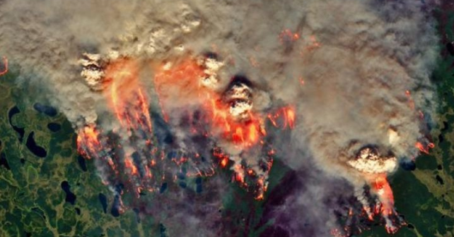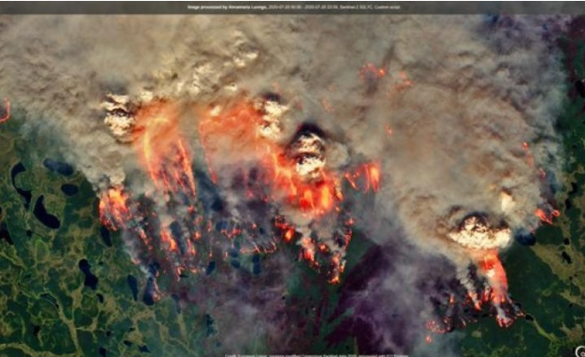 In Russia, per il secondo anno consecutivo, i mega-incendi stanno infuriando all’interno del circolo polare artico e attualmente il fronte del fuoco degli incendi boschivi nell’Artico si è spostato più a nord, al di sopra della latitudine 71.6 N, a meno di 8 chilometri dall’Oceano Artico.