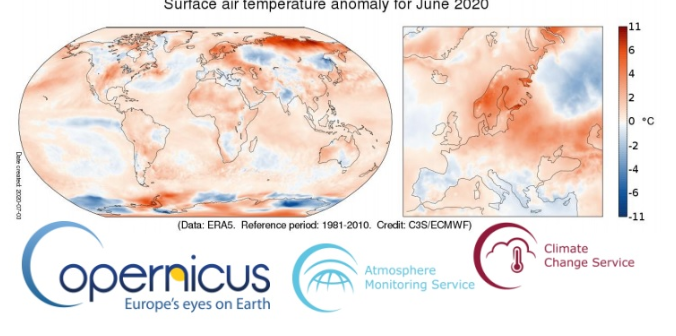 Le temperature medie di giugno 2020 sono simili a quelle record del 2019 a livello globale