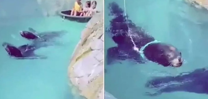 Due leoni marini costretti a trainare una barchetta con tre bambini, bufera su uno zoo Belga